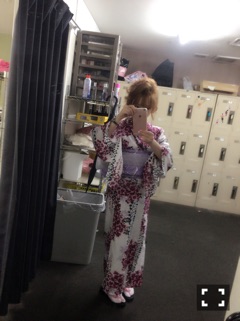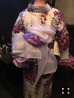 今日は、白地に薄紫のシンプルな浴衣ひなです。