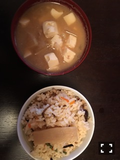 おでんと、五目ご飯と、味噌汁。