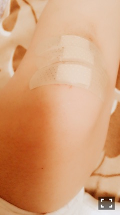 絆創膏で、かくしてるけど、血だらけになって、めっちゃ痛いねん(✖﹏✖)↷