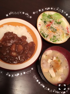 カレーと豚汁とサラダ♡