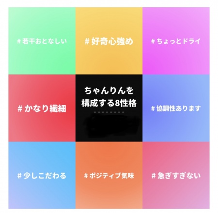 久しぶりに エムグラムやってみたよー\(^o^)/ これがりんの 性格らしいです( °_° )笑 108個の質問に 答えるのはちょっと大変だけど… たのしーい\(^o^)/ 気になった方は 【エムグラム】で検索[🔍] 今日で8月最後だよー(´;ω;`) みなさまお待ちしております❤