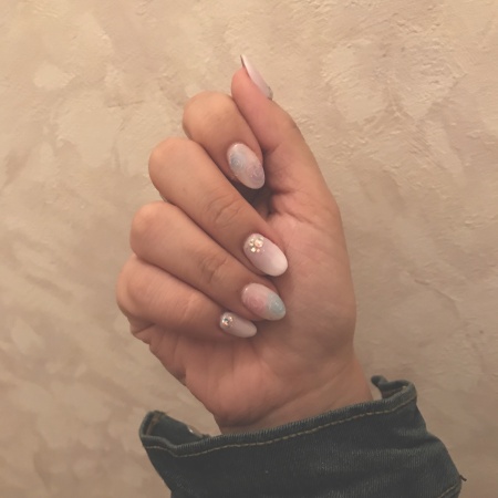 おはようございます🌞 ニューネイル💅🏽✨ いつものあことはちょっと 違う!! 爪はかなり短くして色も デザインも清楚系💖 ネイルを変えるとワクワクする🌟 今日も元気に頑張ります!!