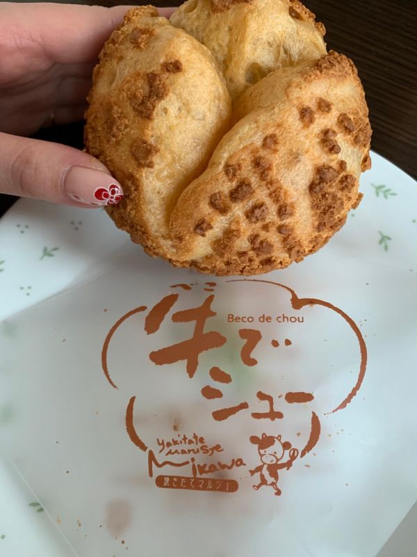 地元の名産?らしいシュークリーム 牛(べこ)でシュー をいただきました♡ 蔵王産地養卵と九州産生クリーム使用 九州産⁉︎ おぉ…九州と出会ったのね…( ̄▽ ̄)不意打ち。 美味しゅうございましたー♪