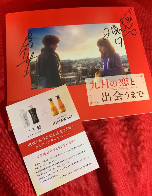 宅配便で かなり厳重に包まれたカタログ届いた〜 なんだこれ?当選??ん?? と思ったら 直筆サイン入り 九月の恋と出会うまで プレスカタログでした♡高橋一生さんと川口春奈ちゃんの直筆サイン!!!!! (状況を理解するまで5分) 生だー!これプリントじゃないよ、生だよ。生一生筆だよ。 いち髪×ディアボーテさん、ホワイトデーサプライズ感謝です♡ 映画まだ観てないので行きまーす!