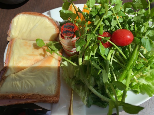 クロックムッシュとモリモリ野菜の中に佇むヤクルト(笑)