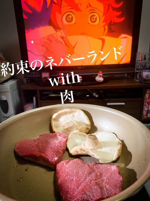 皆さま鍋の〆はご飯派ですか?麺派ですか? それともキッシュですか? 我々はケジャン鍋の〆にランプステーキを食べる🤤 卓上ステーキ。肉厚シイタケも堪らぬ。 うーん、デブリシャス!!(笑) アマゾンプライムで 約束のネバーランド 鑑賞会。 怖い…怖いけど観るの止められない。