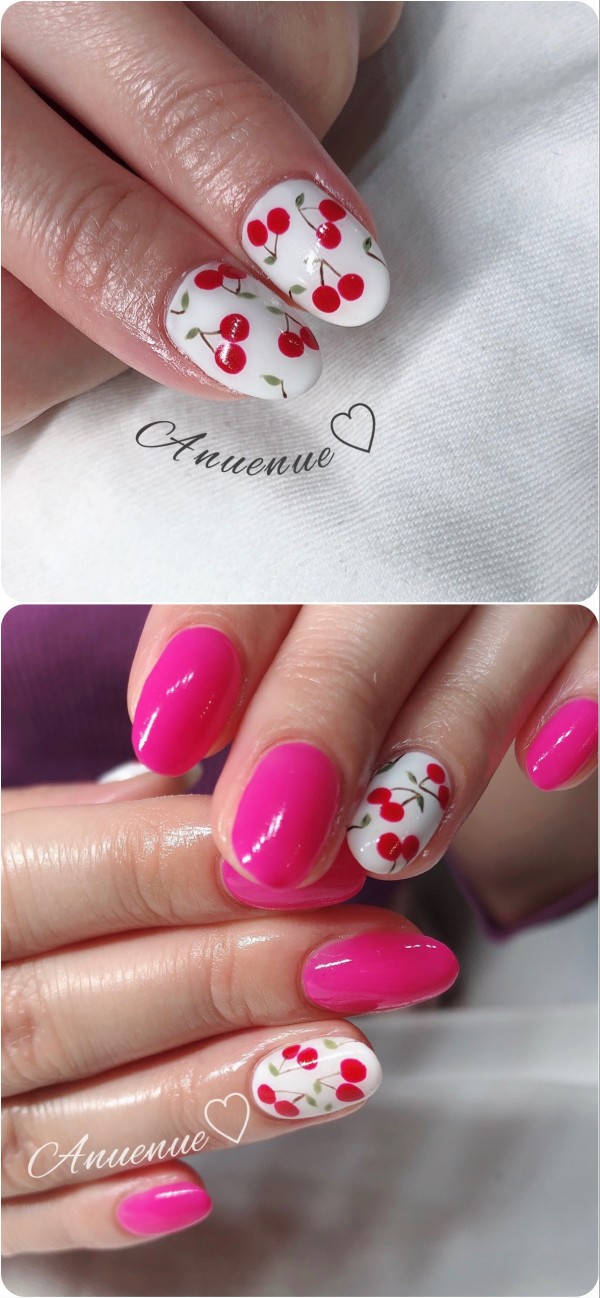 ネイル新しくしました。 今回はお遊びネイル仕様さくらんぼ🍒