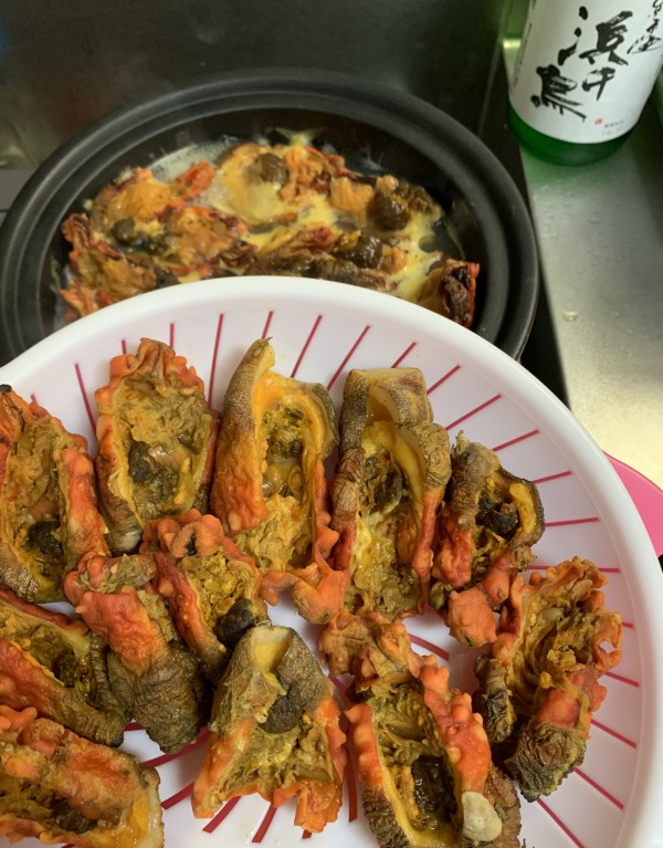 差し入れで頂いたホヤは生でつまみ食いしながら、酒蒸しに🤤 食べきれない分は冷凍! 美味しゅうございました♡ほやっほー!