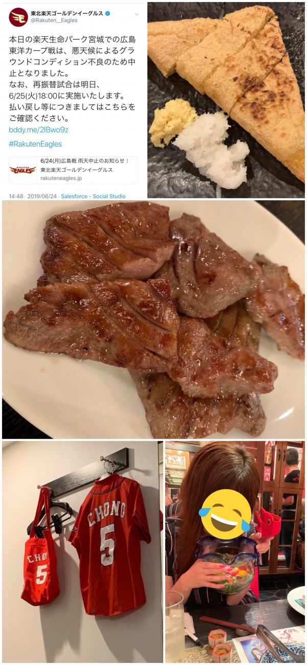 みてみてー前回の新幹線到着時間と、東北楽天ゴールデンイーグルス さんの中止発表の時間。