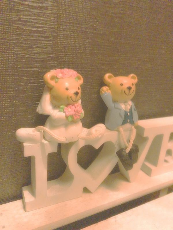 テーブルの上にクマの夫婦が置いてあって、それがね足がプラプラしてるやつなの!
