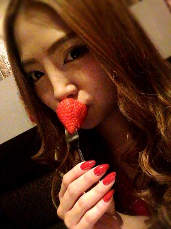 イチゴ食べながらのんきに自撮り🍓🍓🍓